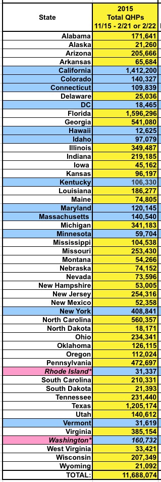 - The official 2/22/15 QHP selection total, according to HHS, is 11,688,074.