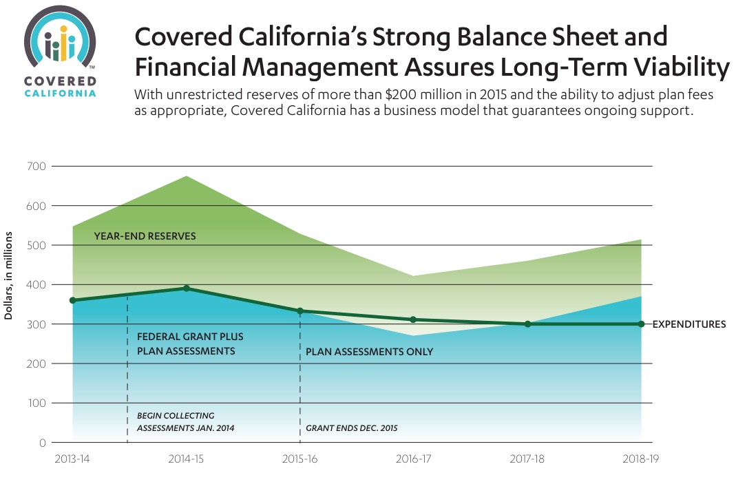 Next, as I noted above, according to CoveredCA's latest projections, after a slight dip next year, they should have a stable and viable budget/funding situation going forward, which means that they, at least, will be staying right where they are: