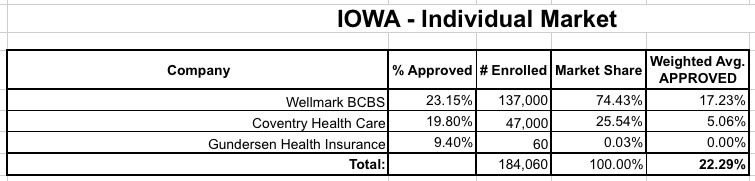 Iowa: Approved 2016 rate hikes look like 22.3% (I think)