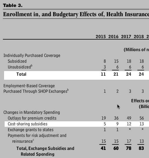 In other words, for 2015 the CBO's $5 billion CSR estimate is likely to be pretty close to the mark even though they overestimate the number of exchange enrollees.