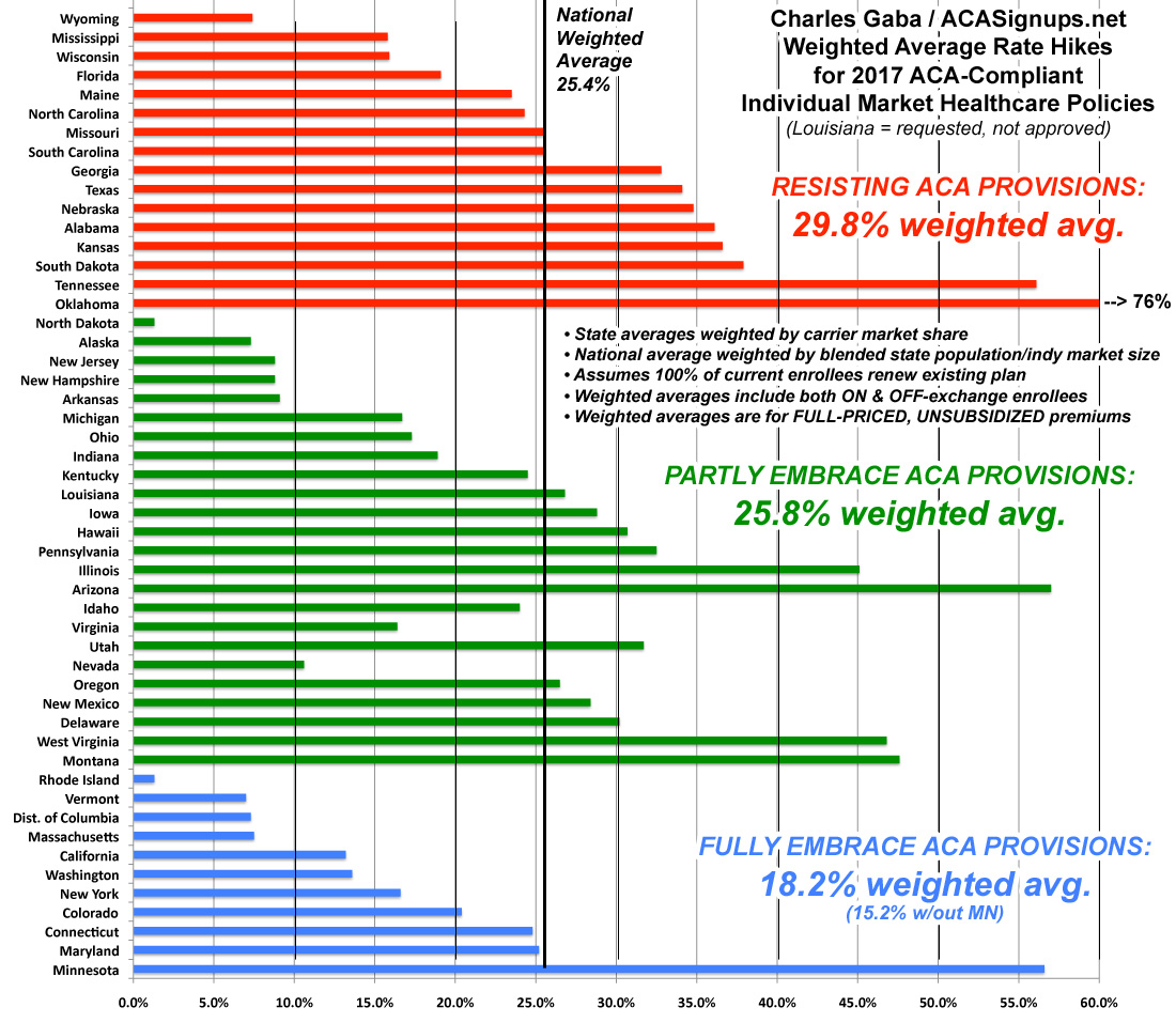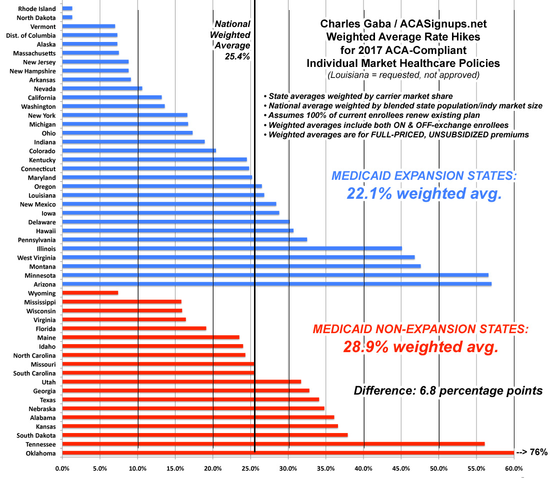 UPDATE x2: 2017 Rate Hikes: Yes, Medicaid Expansion matters. So do State-Based Exchanges and Transitional Policies