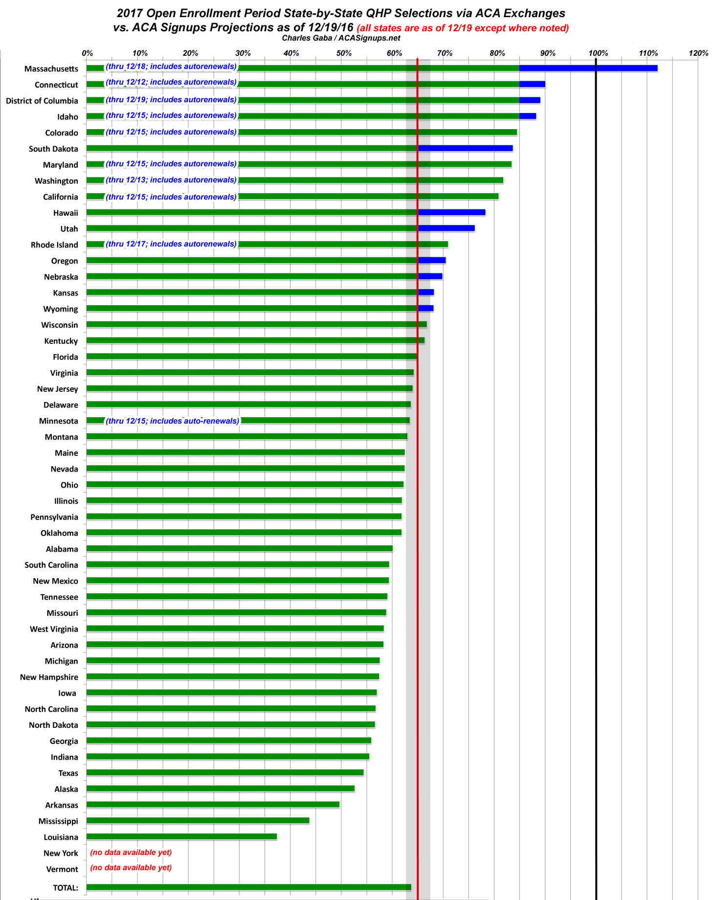• Massachusetts, Connecticut, DC and Idaho are well ahead of schedule, even taking auto-renewals into account.