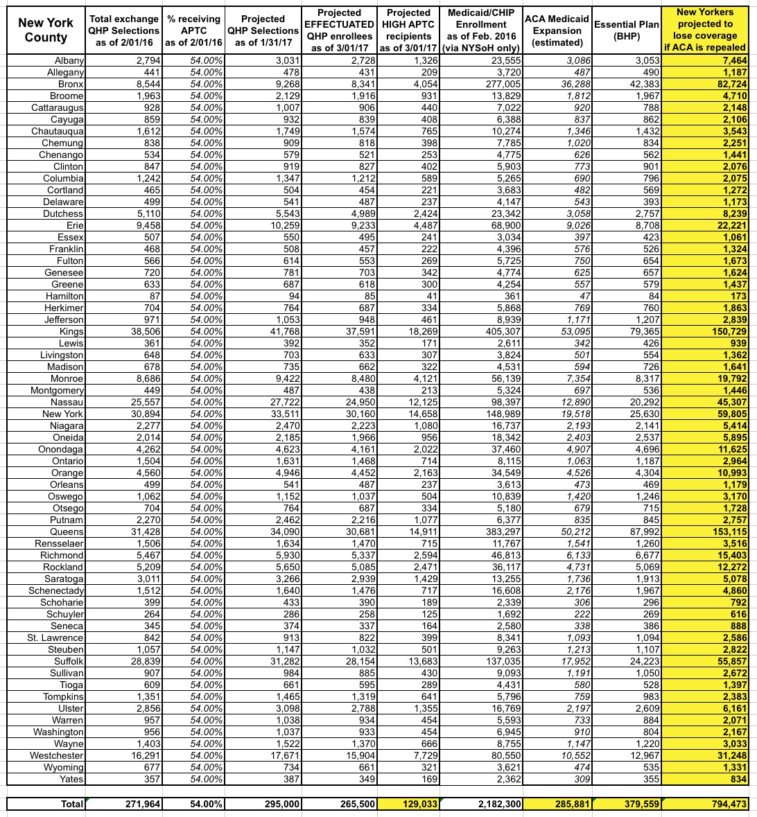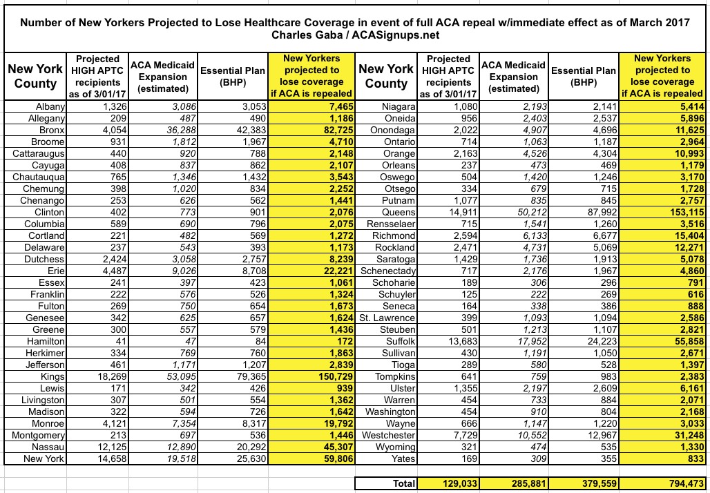 New York: Here's the ~795,000 residents who could lose coverage, by county