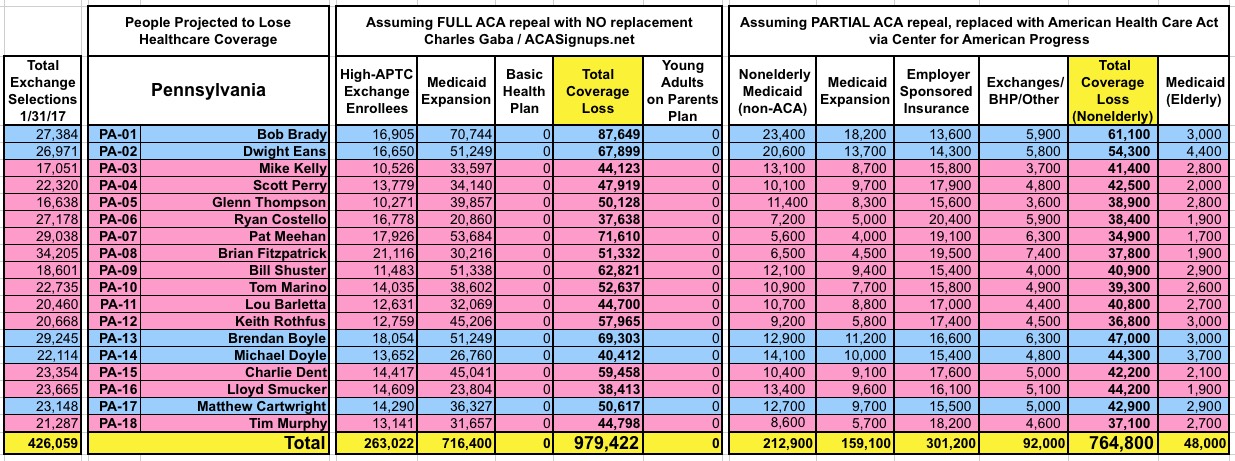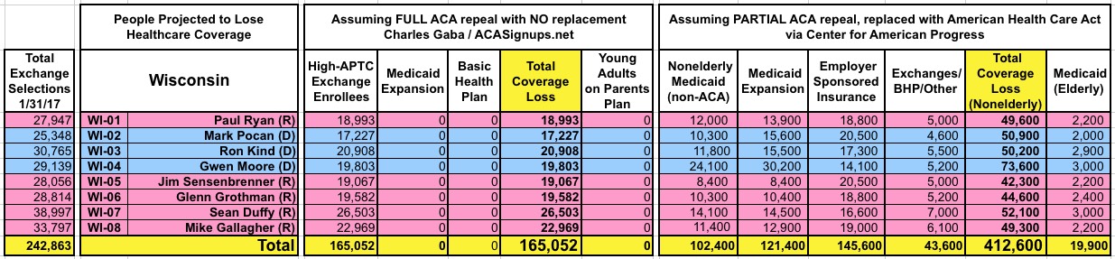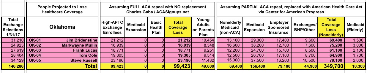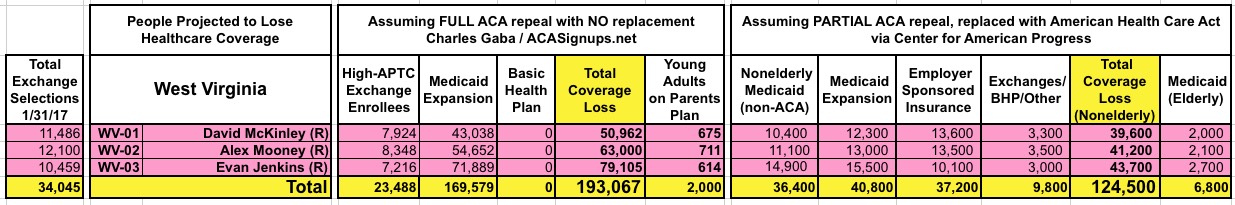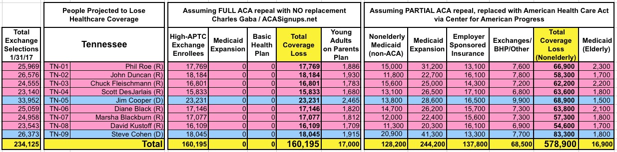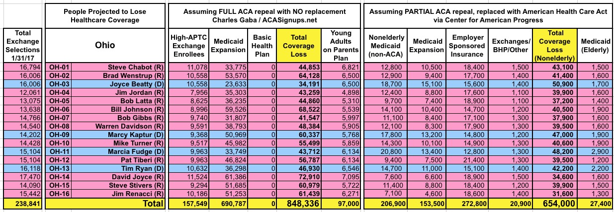 UPDATE: If you scroll all the way to the bottom, I've added a completely updated state/national-level table as well, reflecting both the "clean repeal" and Trumpcare scenarios.