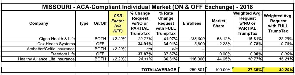 Missouri carriers are asking for a 27.4% average rate increase assuming CSRs are paid, and 39.3% if they aren't.