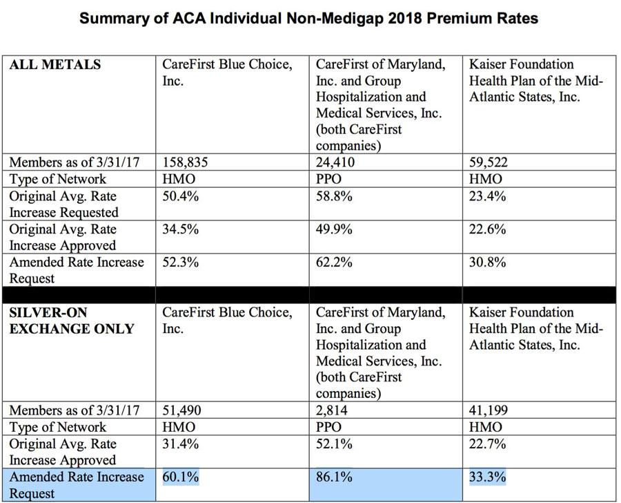 Amended MD requests would load costs on to silver exchange plans - unsubsidized can shop other plans or off-exchange to avoid these hikes