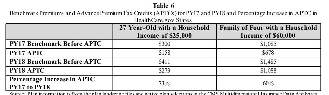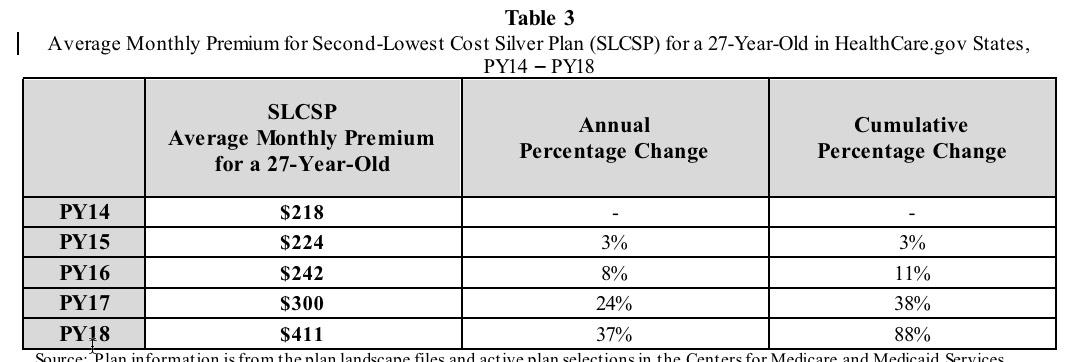 Of course, there's pretty obvious reason for that: Trump's cut-off of Cost Sharing Reduction (CSR) reimbursement payments. The ASPE report does go into this, but not until Page 6. Meanwhile, it's immediately undermined anyway (at least regarding subsidized enrollees) in the very next bullet: