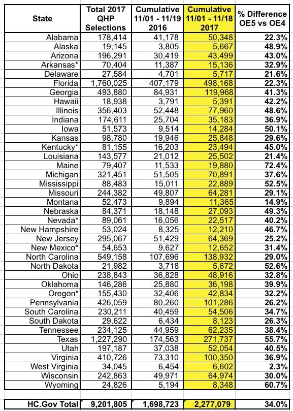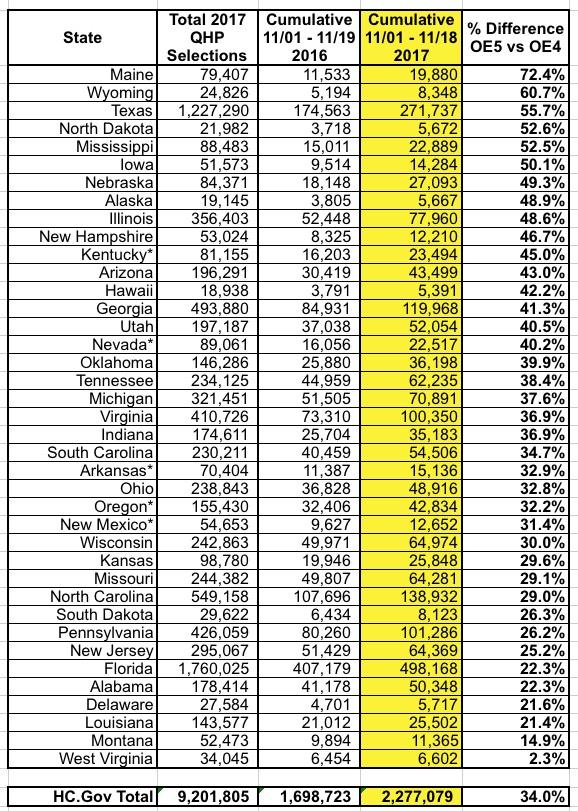 Something else I find interesting: Wyoming is up 60% so far even though their unsubsidized 2018 premiums are the highest in the country...lots of Silver Loading going on?