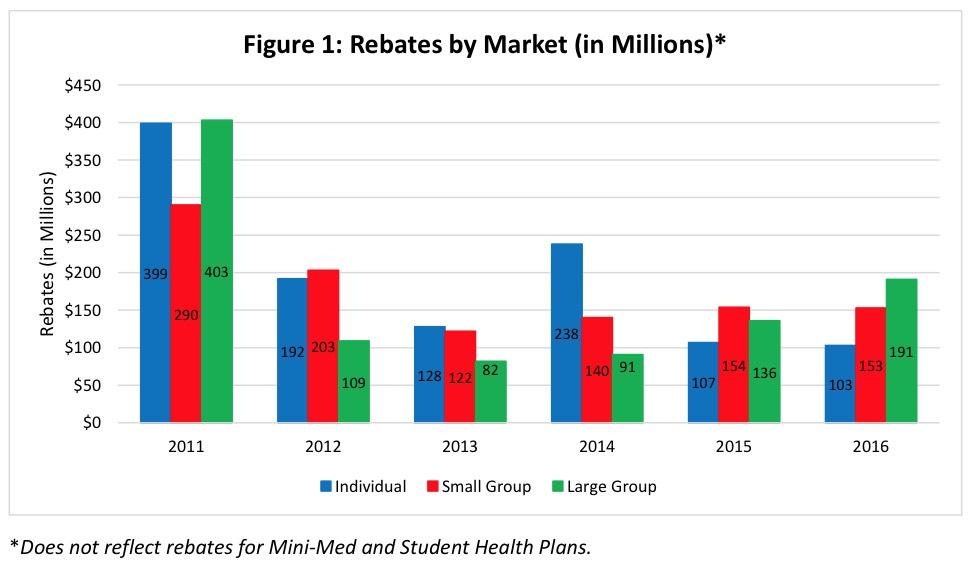In my own state of Michigan, about 363,000 people received rebates averaging $130 apiece: 32,000 on the individual market, 330,000 in small group plans and just 1,270 in large group plans; apparently the carriers offering large group and individual policies have pretty much figured out where they need to be in Michigan, while small group carriers are still trying to stabilize their market, which is interesting since it's usually the individual market which has the most uncertainty.