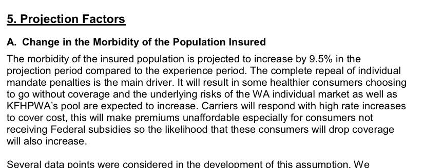 ...and so on. You get the idea. The Urban Institute analysis projected that the one-two sabotage combination of individual mandate repeal + #ShortAssPlans are responsible for a combined 21% average premium increase in Washington State. If accurate, that suggests that absent these factors, premiums would actually drop by about 2% next year.