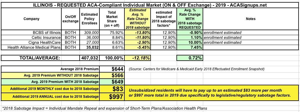 Illinois: Preliminary 2019 rate changes: Nearly FLAT, but *would* likely DROP ~12% w/out #ACASabotage