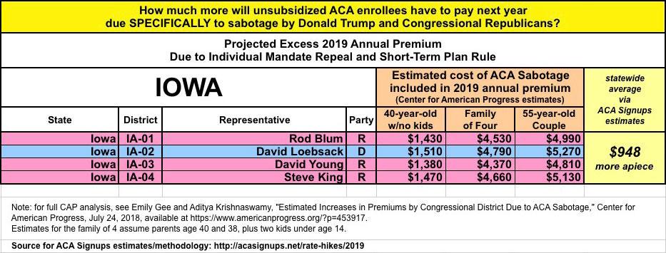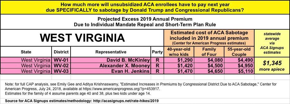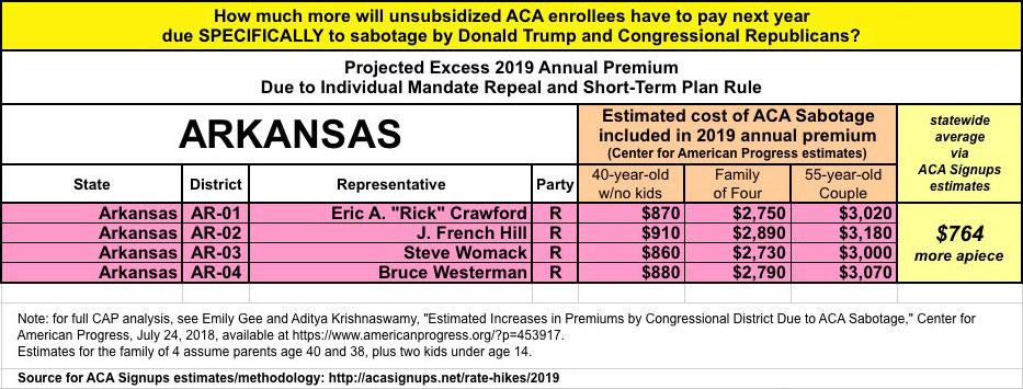 As they also know, last year and again this year I've expanded on this by breaking out the portion of the annual rate increase which can be tied directly to sabotage efforts by the Trump Administration and Congressional Republicans. For 2018, this boiled down to roughly 17 points of the total nationwide increase being sabotage-related. It varied greatly by state, carrier and plan, but nationally, I estimated that without last year's ACA sabotage efforts, average premiums would have gone up around 11% instead of around 28%.