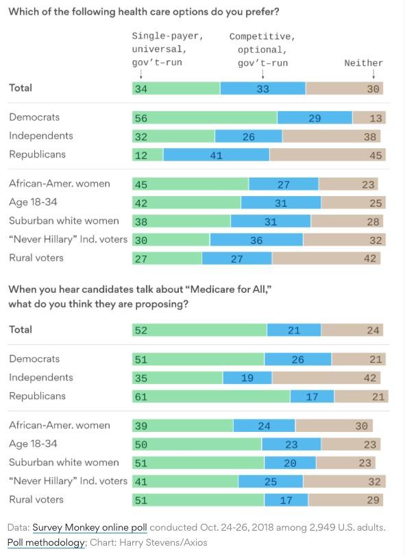 The messaging waters are muddied even further by the other question: Both candidates and the public are all over the map when it comes to what they think "Medicare for All" actually means.