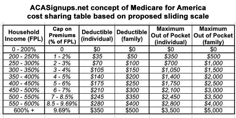 UPDATE 4/16/19: Please note that this overview refers to the version of Medicare for America introduced in December 2018. There's a revised version of the bill being re-introduced in the near future which is expected to include several important changes. The only two which have been made public so far are: 1) Deductibles are expected to be eliminated altogether; and 2) the upper-end percent-of-income maximum premium is supposed to drop from 9.69% to an even 9.0%.