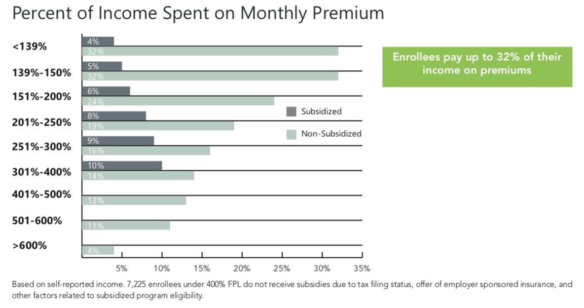 • Non-subsidized customers pay up to 32% of income on their premium