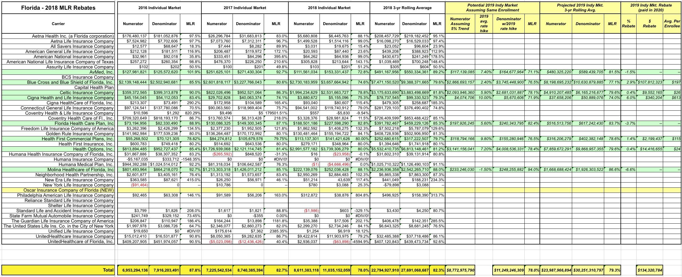 Exclusive! Florida: 2018 MLR Rebate Payments (& potential 2019 rebates)
