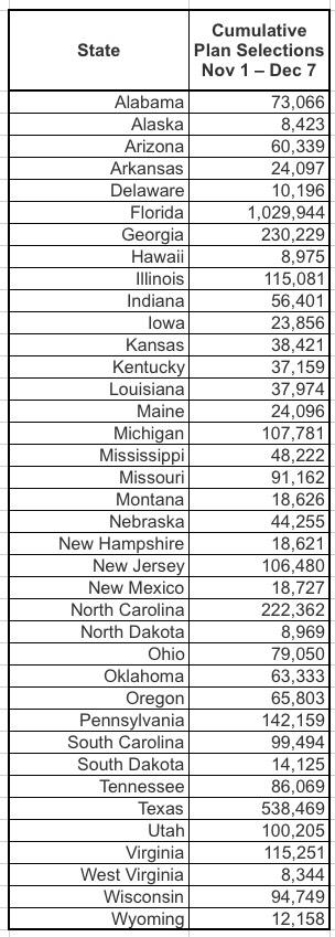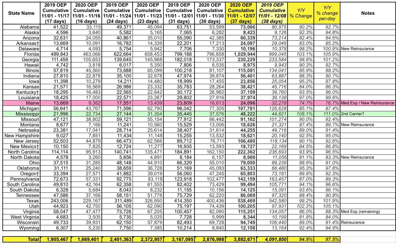 Other states which are outpacing 2019's Open Enrollment Period: Delaware, Georgia, Texas, Utah and Florida.