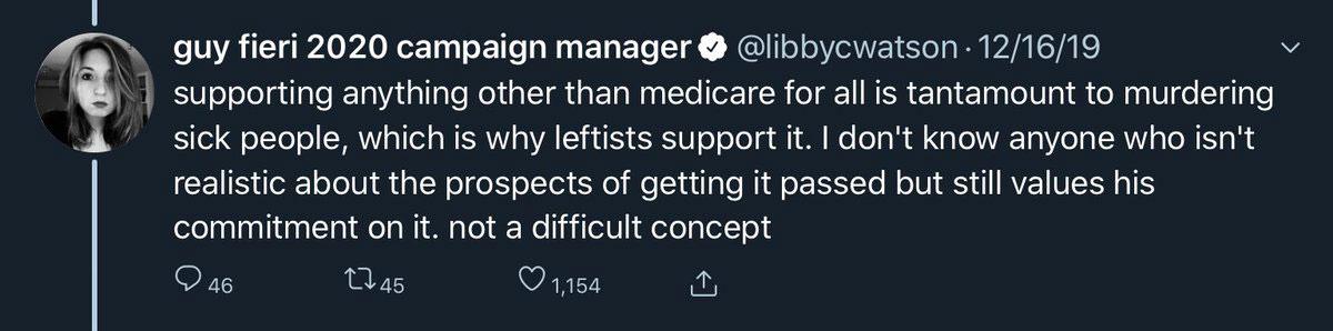 I'm well aware of how the Overton Window works. I know there's a big difference between the poetry of campaigning and the prose of governing. I also know that Bernie Sanders understands the distinction--he's been a member of Congress or a Senator for 30 years, for God's sake. My problem with Bernie--and with a significant chunk of his supporters--is NOT that they push for Big Sweeping Progressive Reform. I may not think his "pure" M4All bill is the right solution to push at this particular time, but I'm perfectly fine w/them pushing for it.