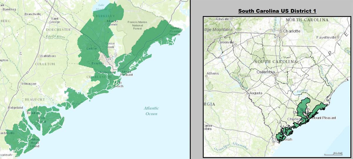 Today, I'm looking at South Carolina's First Congressional District. SC-01 stretches across the southeast coast of the state, and includes Charleston and Myrtle Beach, along with a bunch of coastal island communities. It's been represented by Democrat Joe Cunningham (who lives in Charleston) since 2019; he's the first Democrat to represent the area in decades: