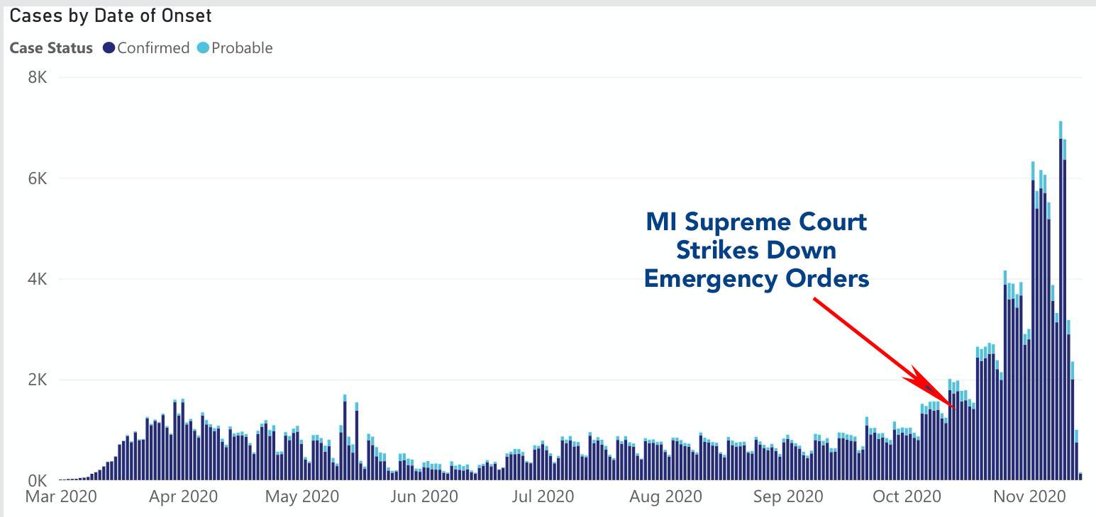 LANSING – Emergency orders Gov. Gretchen Whitmer has issued under the Emergency Powers of Governor Act are struck down, effective immediately, the Michigan Supreme Court said Monday in a 4-3 order that added an exclamation mark to an Oct. 2 ruling.