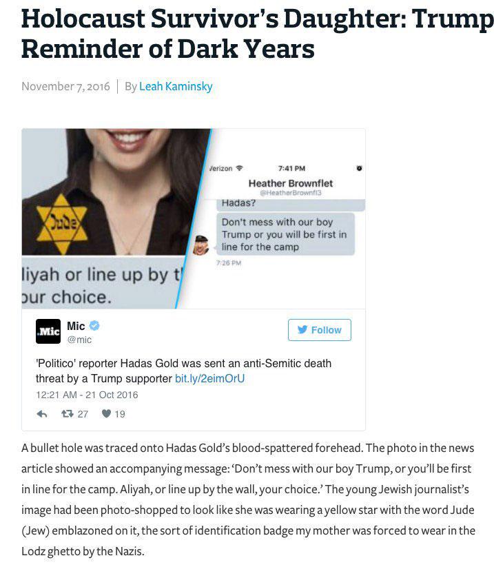 I then presented a long list of, again, *actual* Holocaust survivors who see Trump and are scared shitless of the parallels. You’ve responded to none of this. You just keep going with “Trump’s no Nazi, anyone who sez he’s Nazi-like is crazy.”