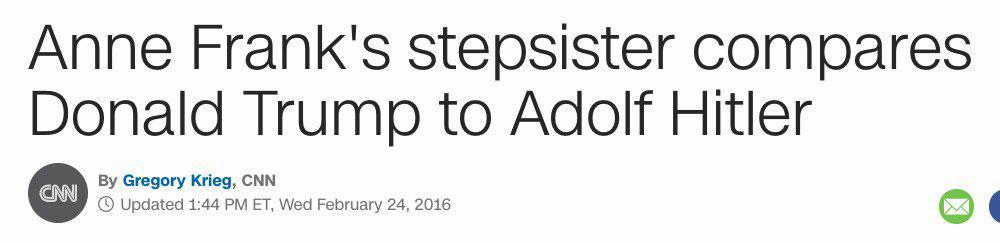 So I point this out, he accuses me of “going Godwin”. I note that a) Godwin himself sez it’s sometimes legit comparison, and b) when actual Holocaust survivors (including Anne Franks’ stepsister) say the comparison is valid, IT’S FUCKING VALID. HOWEVER, beyond that, let’s go back to his original point: It’s difficult for reporters to talk to Trump, so they’re desperate for any occasion to do so. Gee, why the hell do you think that’s the case? Perhaps because HE refuses to hold an actual press conference, and treats them like shit?