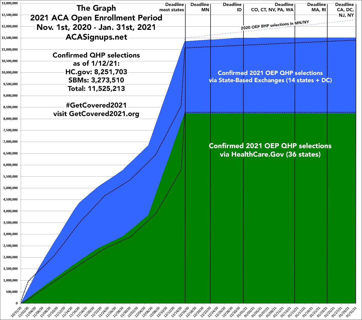 The Graph: 11.5 million QHPs confirmed nationally; will likely break 12.0M by 1/31; still time to #GetCovered in 12 states!