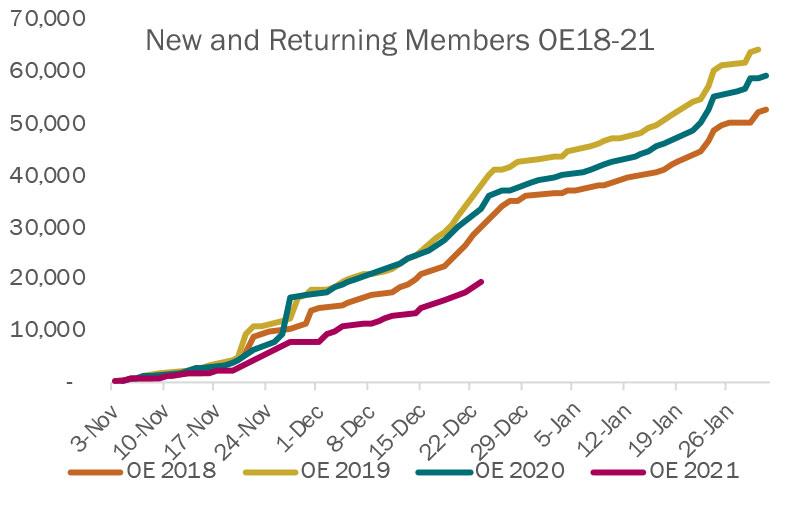 • Through Dec. 22, over 277,000 members had enrolled for January, a 6% percent reduction from last year at this time.