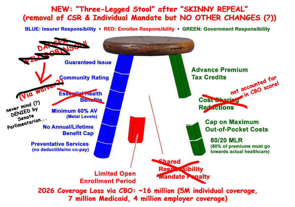 UPDATE 7/27/17 12:50pm: OK, that was fast...apparently the Senate Parlimentarian has already ruled that the State EHB Waivers aren't kosher under reconciliation rules after all, so presumably they're out. Still no word on Planned Parenthood defunding.