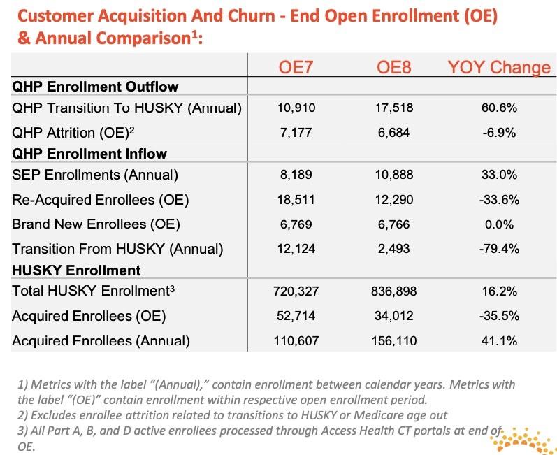 Connecticut: @AccessHealthCT enrolls 105K QHPs during Open Enrollment; down 2.7% y/y