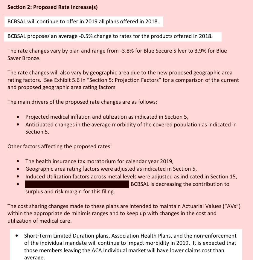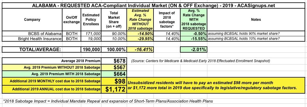 Alabama: Preliminary 2019 ACA rate changes: 2% DROP, would likely drop by up to ~16.4% w/out ACA Sabotage