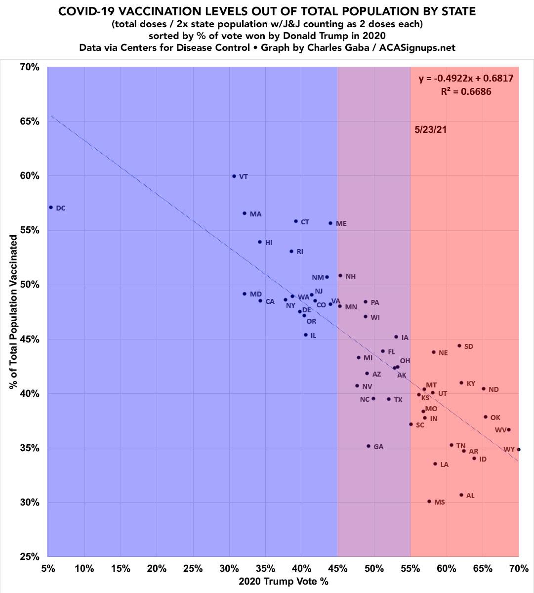 I then adjust each state by counting the single-dose Johnson & Johnson vaccine twice (since it's effectively similar to getting 2 Pfizer or Moderna doses).