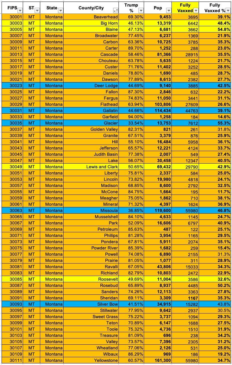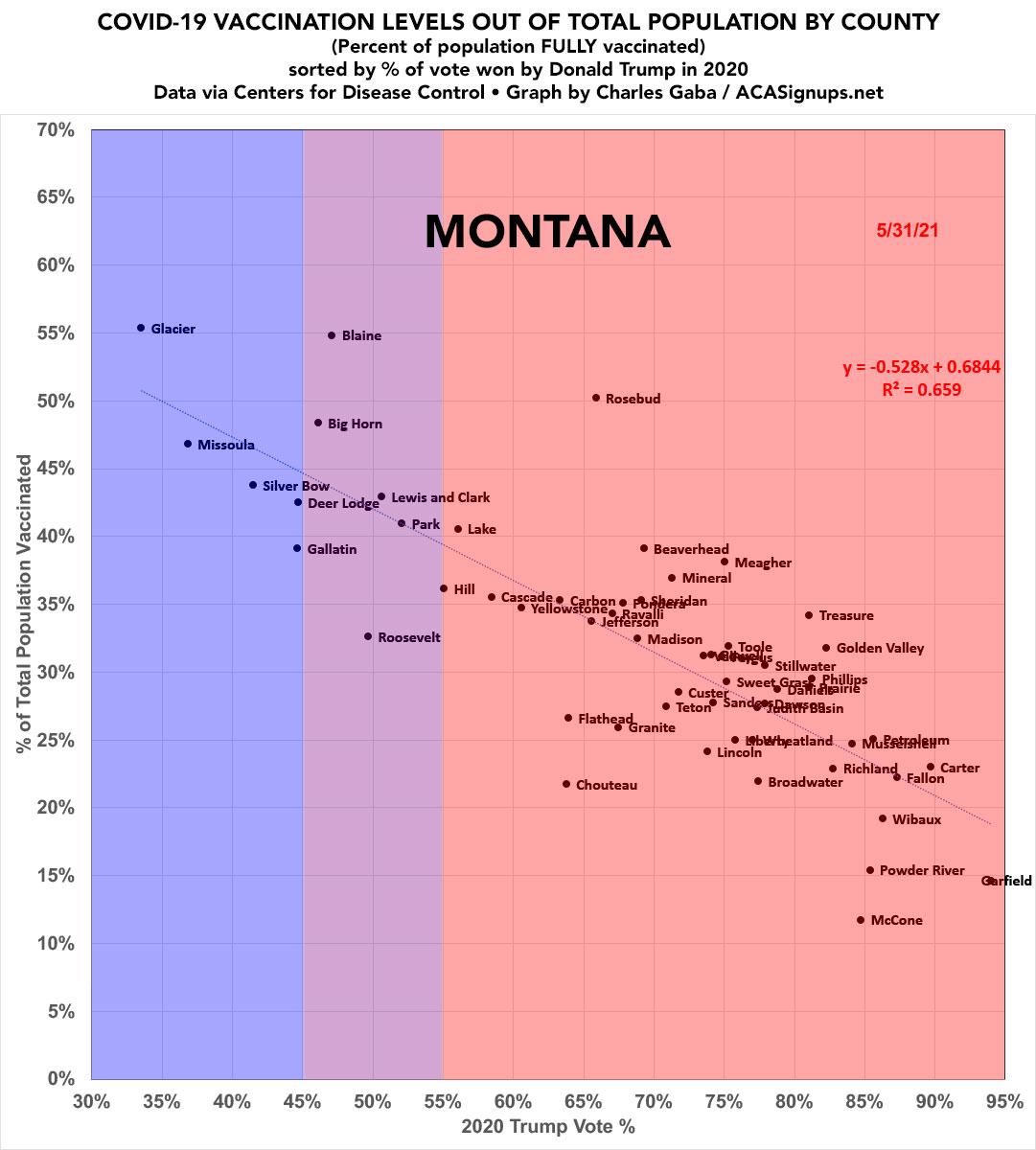 Montana: #COVID19 vaccination rates by county & partisan lean