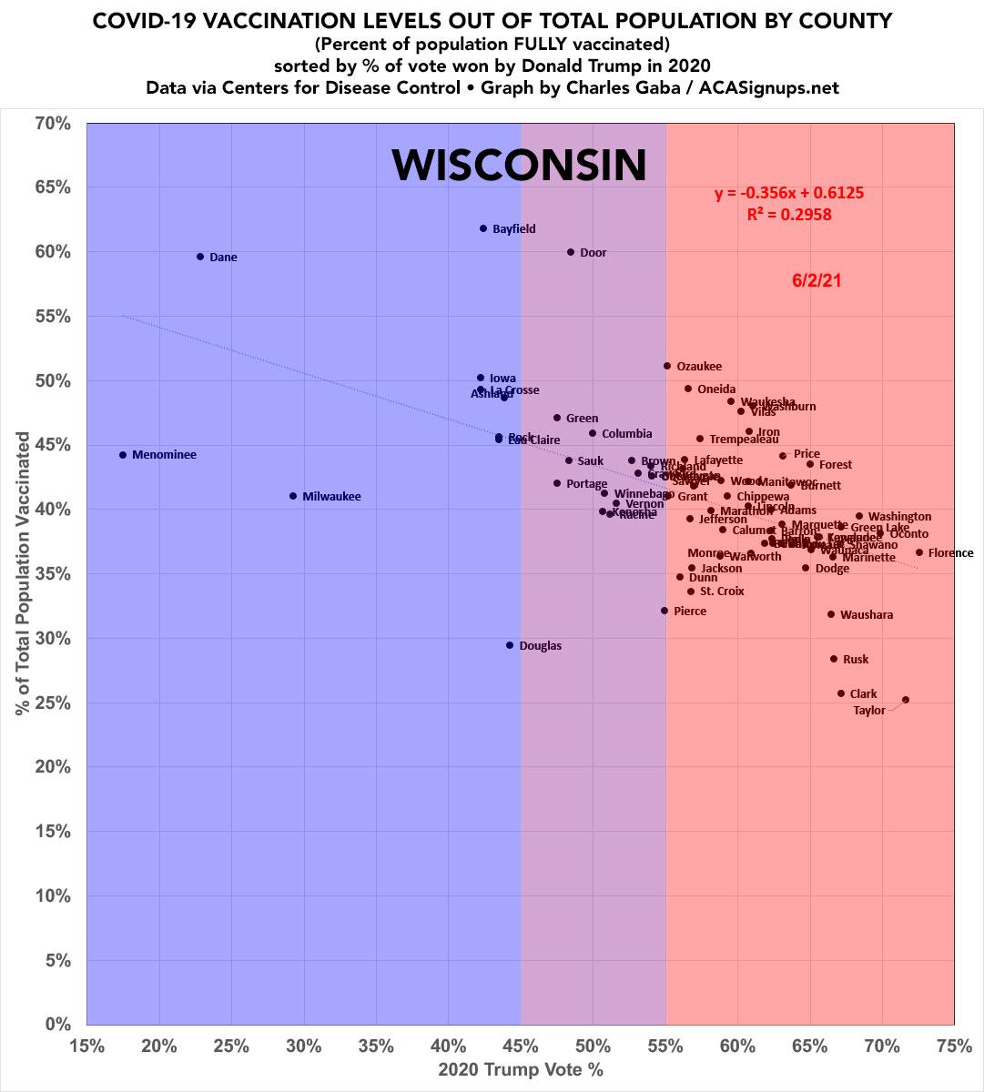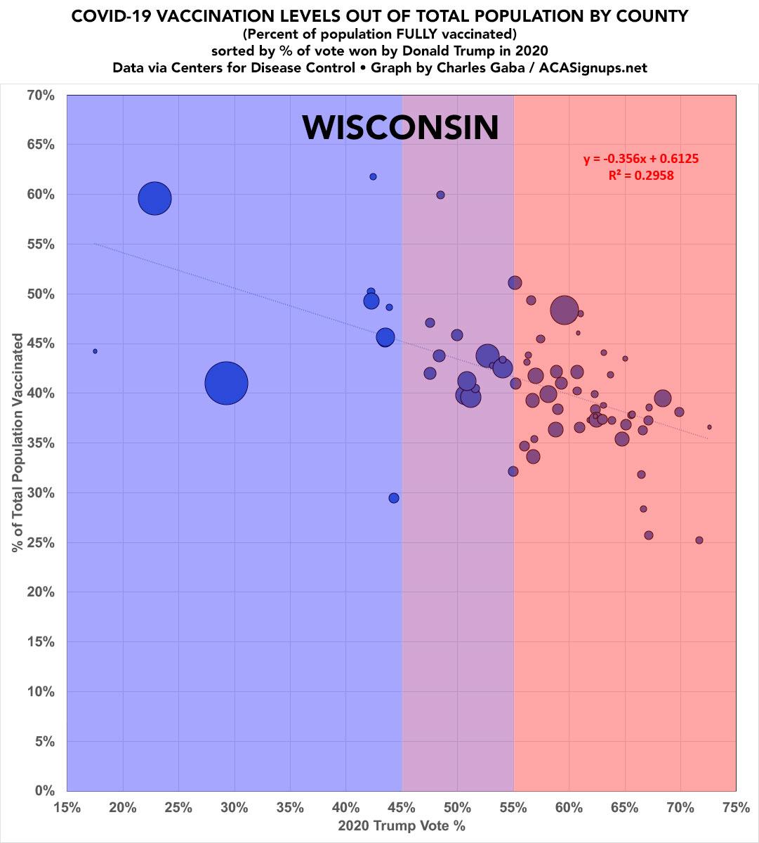 Wisconsin: #COVID19 vaccination rates by county & partisan lean
