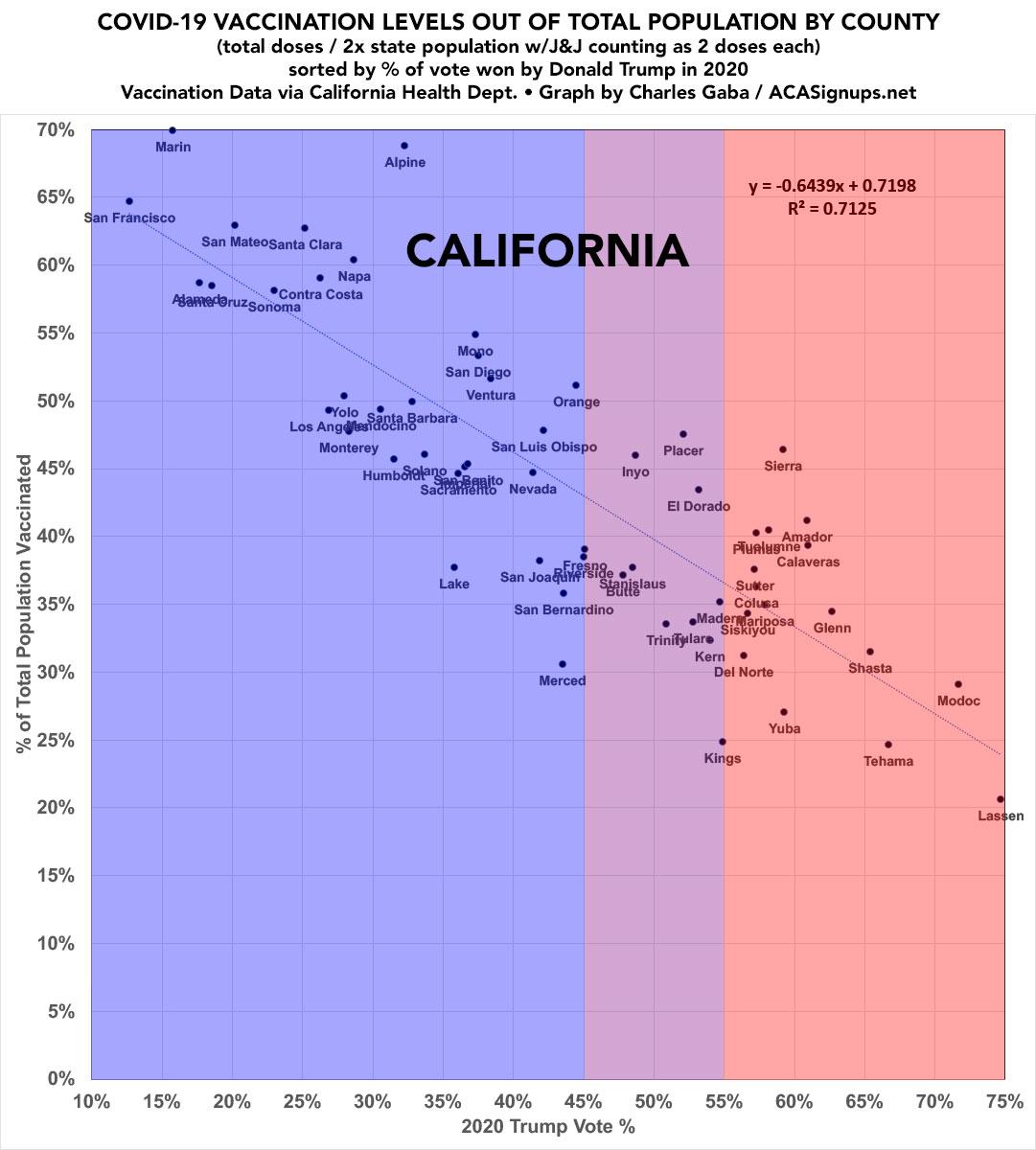 Updated: California: #COVID19 vaccination rates by county & partisan lean