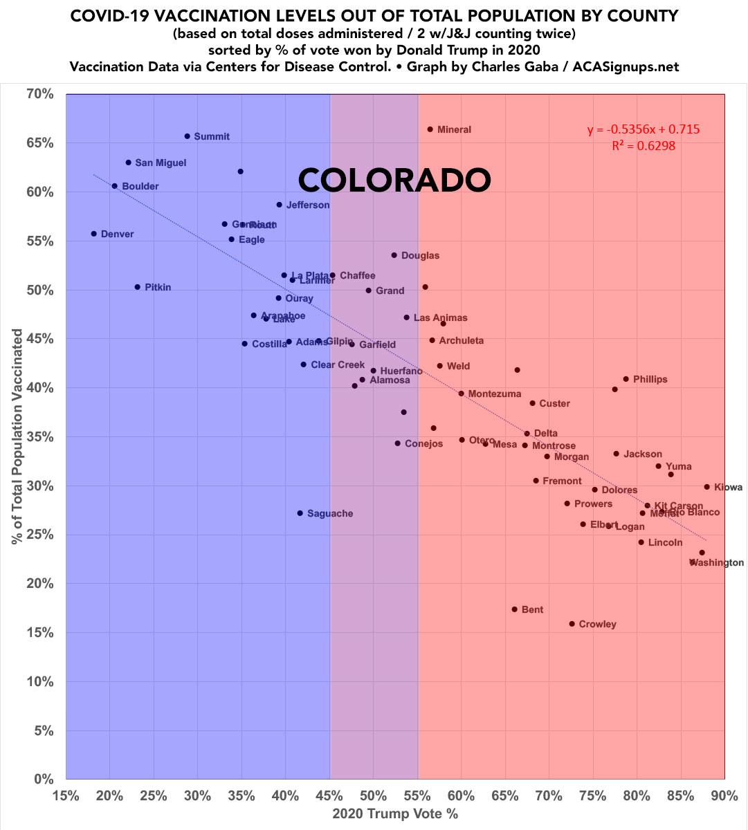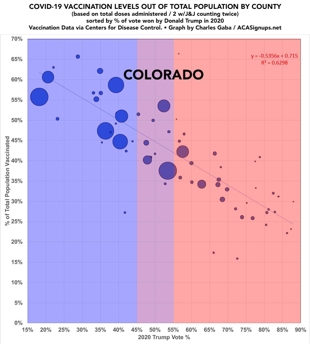 Updated: Colorado: #COVID19 vaccination rates by county & partisan lean