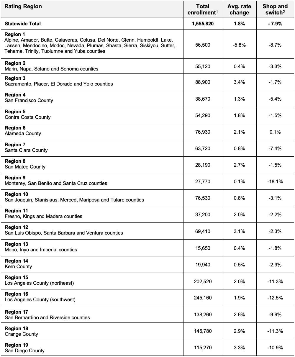 - The record enrollment and healthy consumer pool were key factors in negotiating a preliminary rate increase for California’s individual market of just 1.8 percent in 2022, and a three-year average of only 1.1 percent (2020-2022).