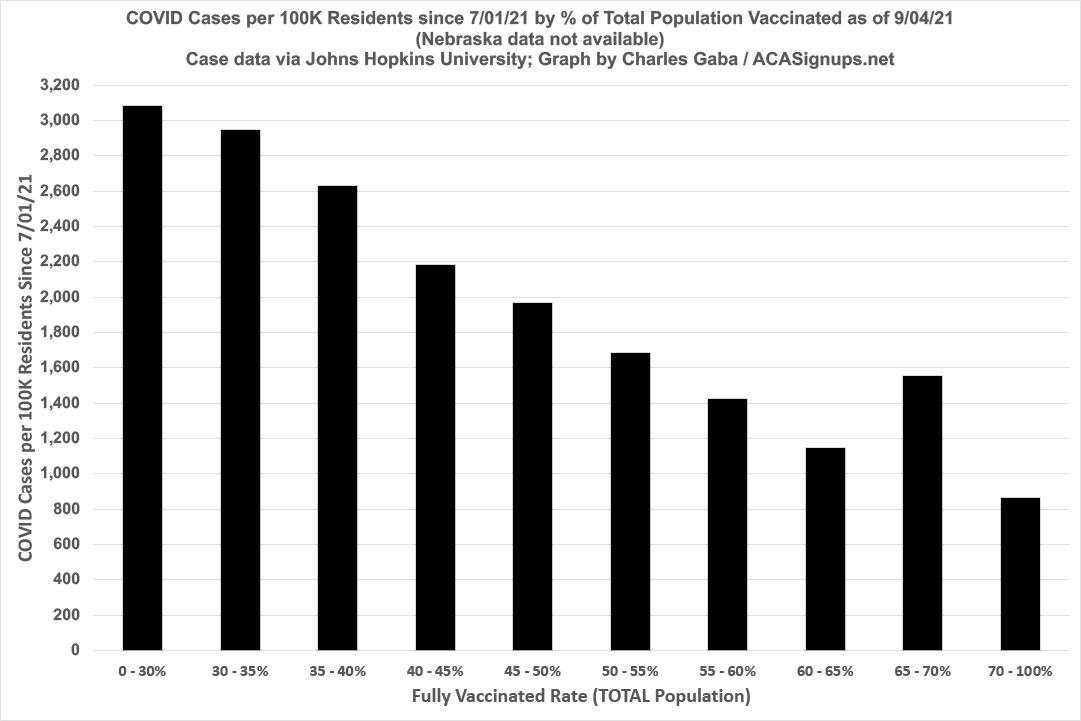 In any event, here's what the new COVID death rates since 7/01/21 look like by vaccination rate, in both the scatter-plot and bar graph formats.