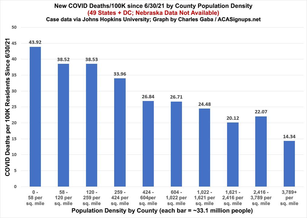 Travis then addresses the supposed Urban/Rural divide by noting that Vermont (rural) has the 2nd-lowest COVID death rate in the country, while New Jersey (urban) has the 2nd-highest. Of course, during the first wave of the pandemic a year and a half ago, you couldn't throw a stone without hearing about the horrifically high death rate in New York City, Los Angeles and other major urban centers.