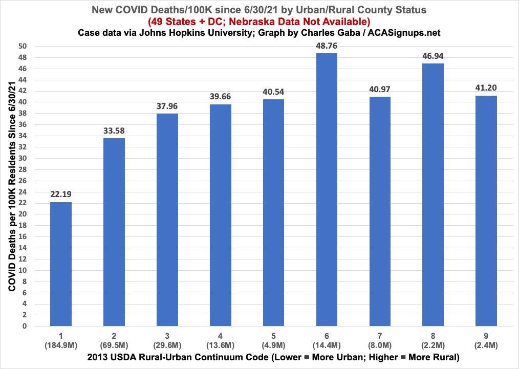 The problem with his logic, as Travis pointed out in his own analysis, is that this was the exact opposite a year and a half ago, when COVID was ravaging the Big, Densely-Packed Cities while folks living in Rural America were barely touched by the pandemic. Unless I'm missing something, I'm pretty sure that those rural areas didn't suddenly see thousands of hospitals and other healthcare facilities shut down in just the past 18 months (Beckham notes that 138 rural hospitals have closed in the past decade, which is a tragedy, but I don't think that all happened since February 2020).