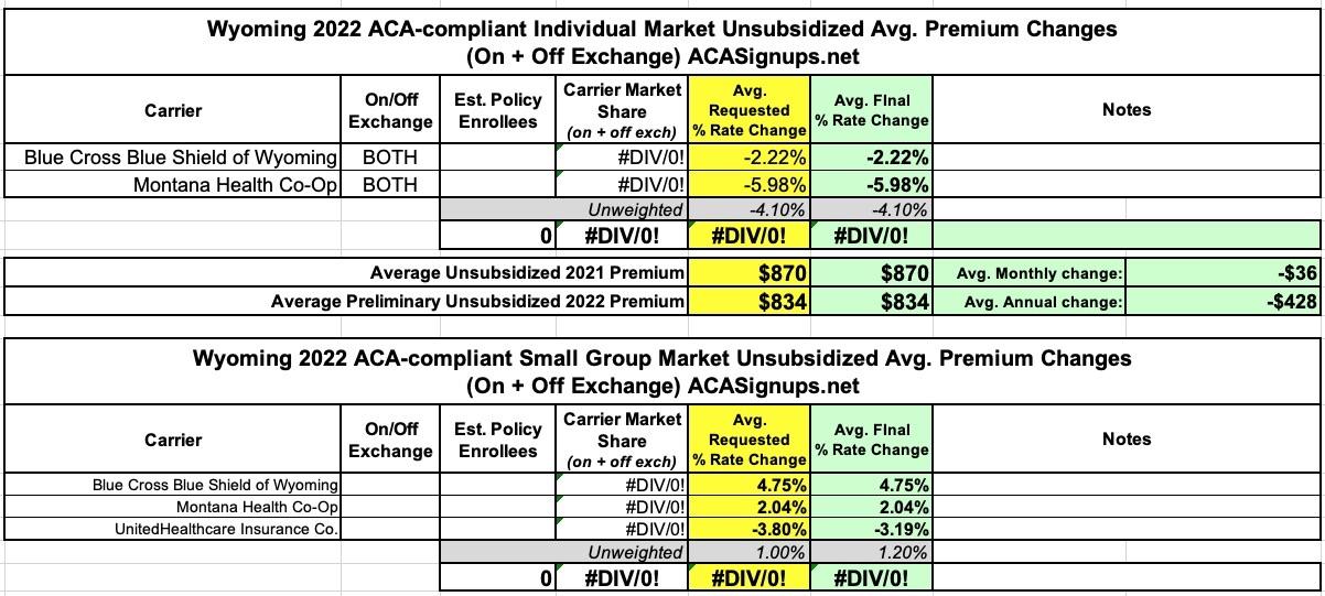 As I noted last night, thanks to the federal Rate Review website finally being updated to include the final, approved 2022 rates for both the individual and small group markets in all 50 states (+DC), I've been able to fill in the missing data for my annual ACA Rate Change Project.