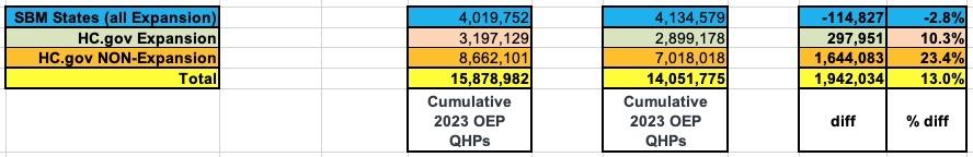 Here's some further points of interest from my analysis of the semi-final 2023 ACA Open Enrollment report earlier today: