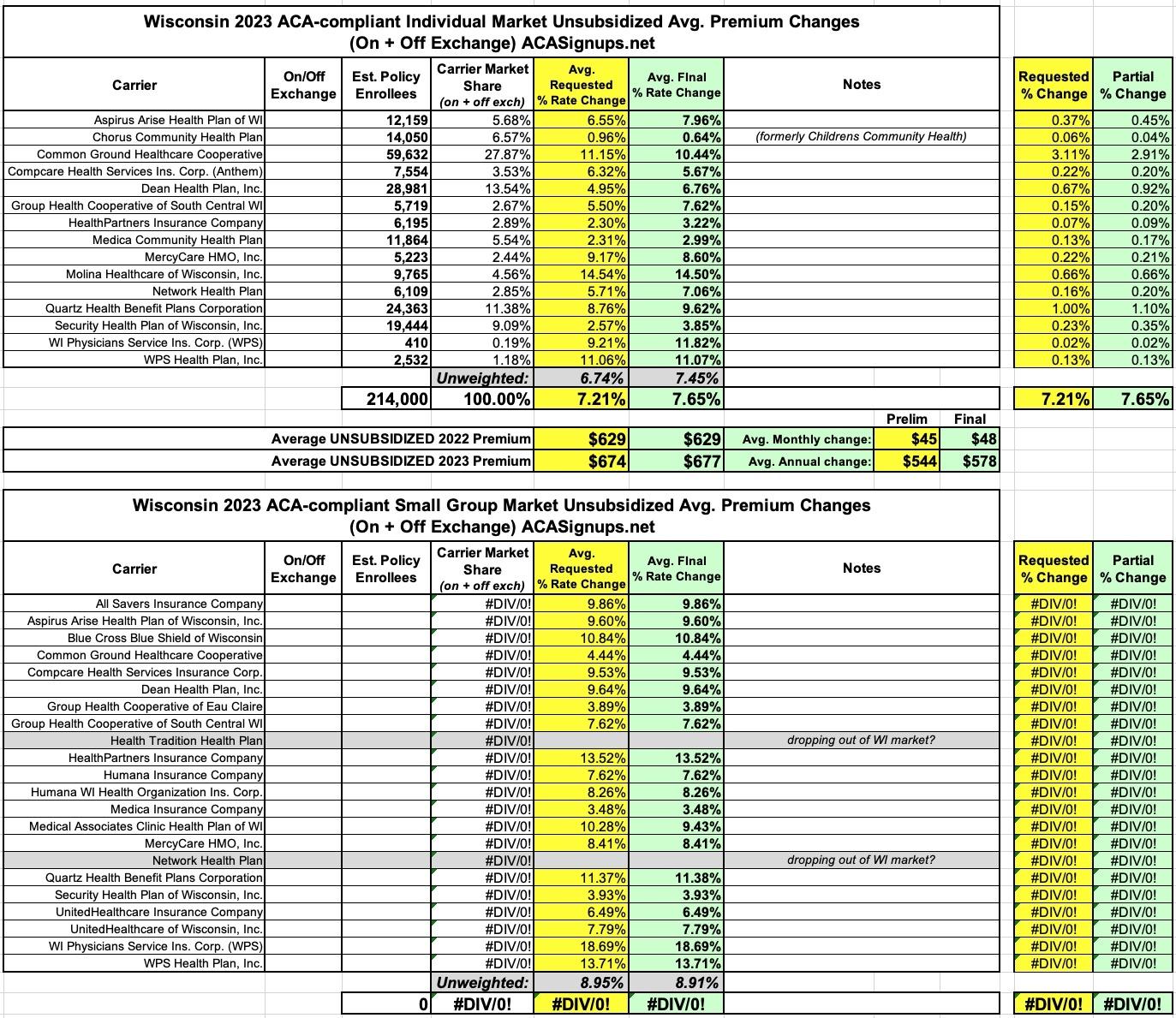 The bad news is that it was extremely difficult to acquire Wisconsin's 2023 rate filings prior to the actual Open Enrollment Period launching this morning.