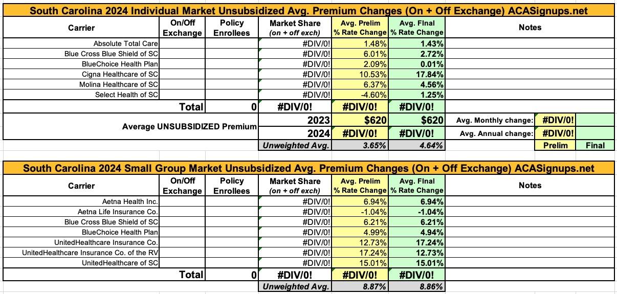 South Carolina: *Final* avg. unsubsidized 2024 #ACA rate changes: +4.6% (unweighted; updated)