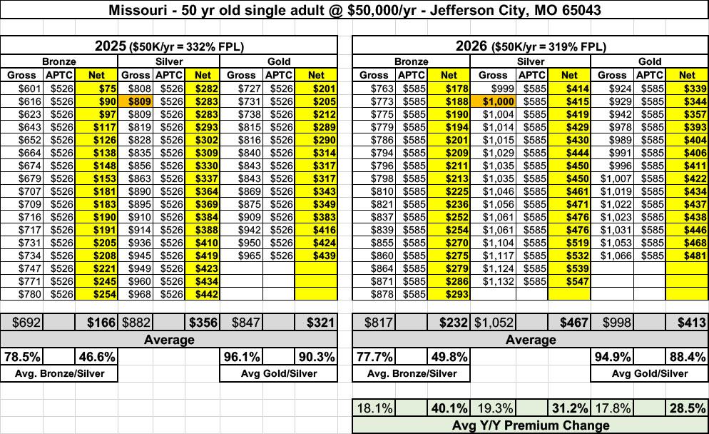 The tax credits expiring have made Gold plans more expensive, of course...but they've basically just brought them up to what Silver plans cost in 2025!