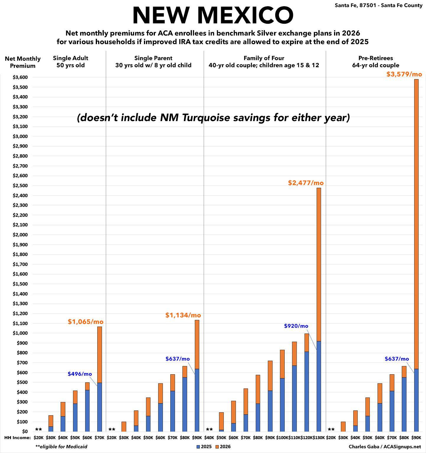 Like some other states, New Mexico has their own "Turquoise Savings" subsidy program on top of the federal subsidies; I have no idea how this will play out next year with the expiring IRA subsidies, but it's going to mean drastic rate hikes for a lot of people regardless.