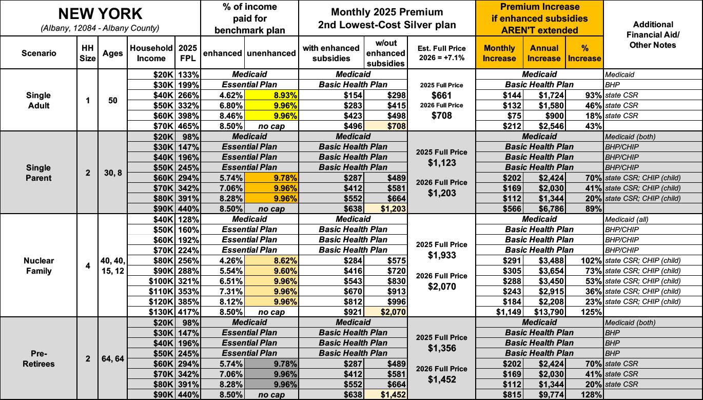 New York has around ~222,000 residents enrolled in ACA exchange plans, 63% of whom are currently subsidized. I estimate they also have another ~31,000 unsubsidized off-exchange enrollees.