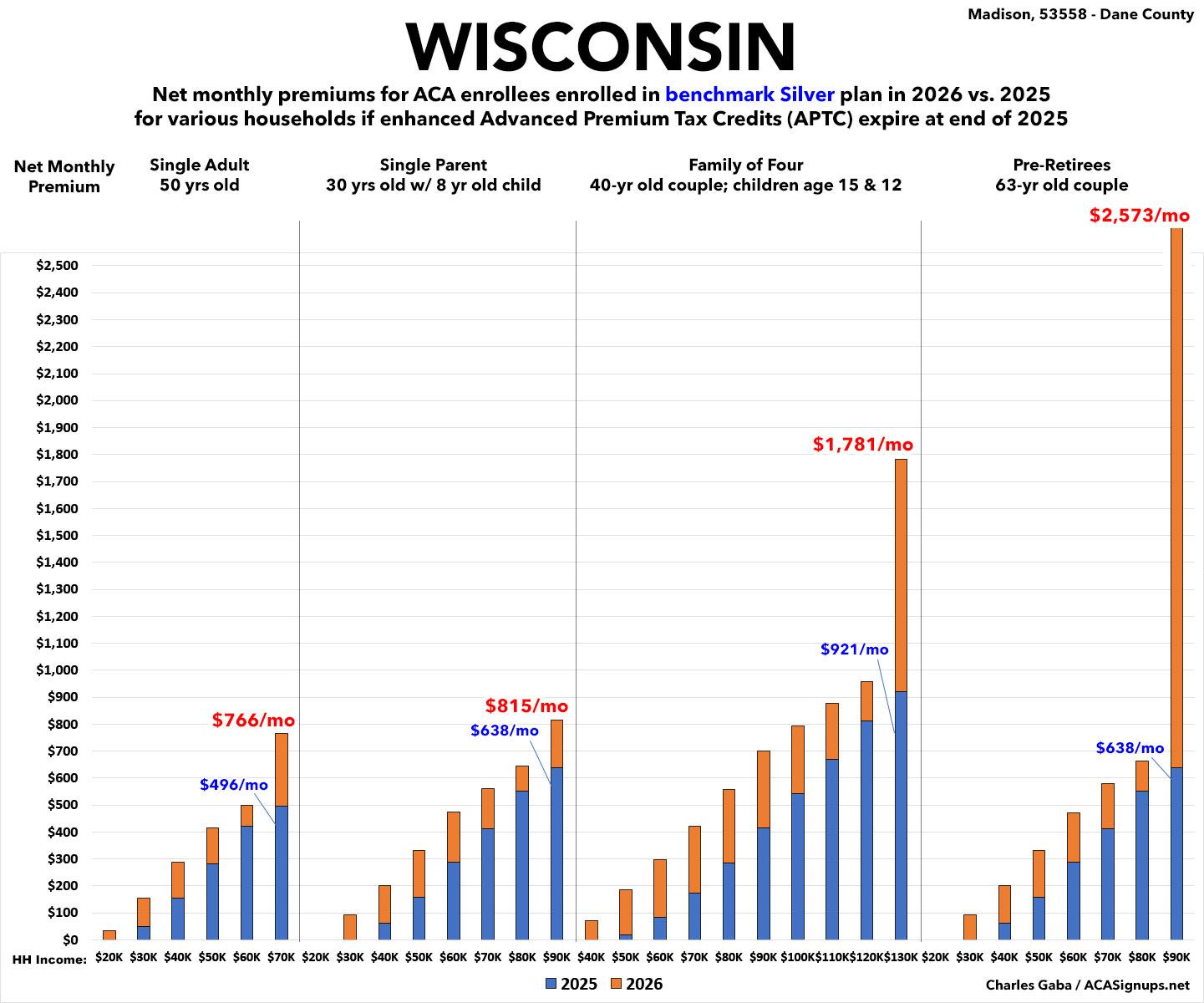 I decided to run the numbers myself to get an idea of just how much the combination of expiring IRA subsidies and the CMS "Affordability/Integrity Rule" will cause net premiums to increase starting in January 2026.