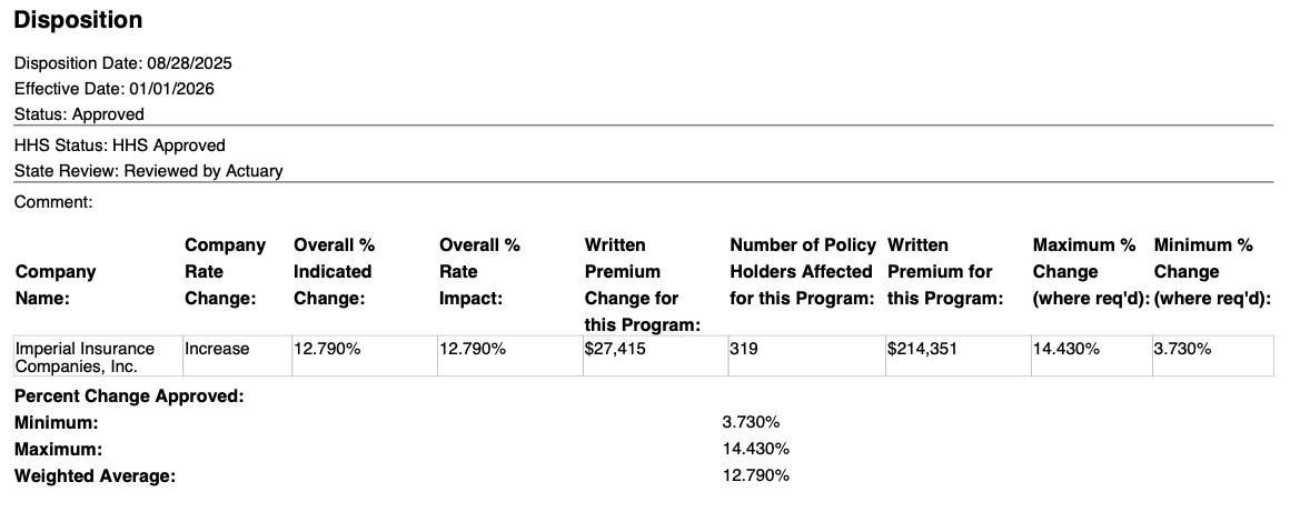 - In addition, the final/approved rate changes for most of the carriers was increased beyond the original request (a few were approved as is and one was reduced slightly)